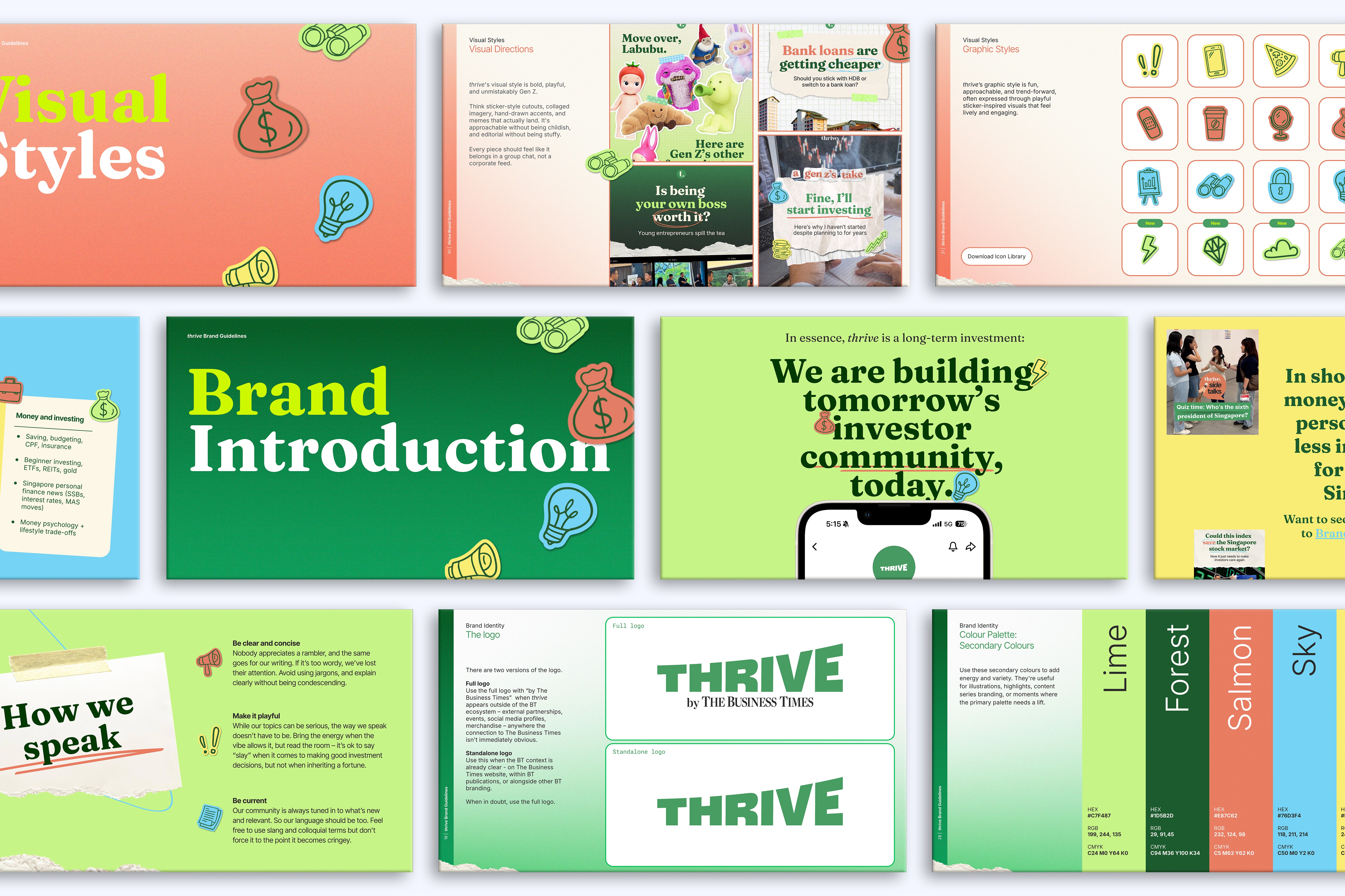 We also developed a comprehensive brand book — bringing together Thrive's visual identity, tone of voice, and design system into a polished, structured document that ensures consistency across all touchpoints.