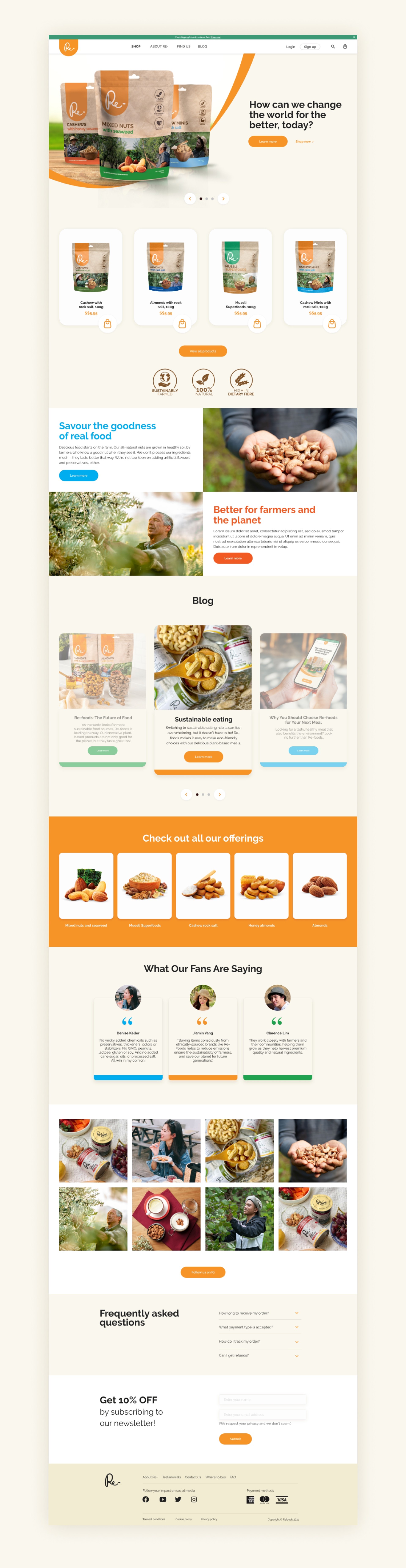 The project began with a deep dive of the soon-to-be products, ingredients, company values, and target audiences. What came from that work was a shared understanding of the brand’s purpose: Re- exists to bring sustainable, healthy food direct to consumers.