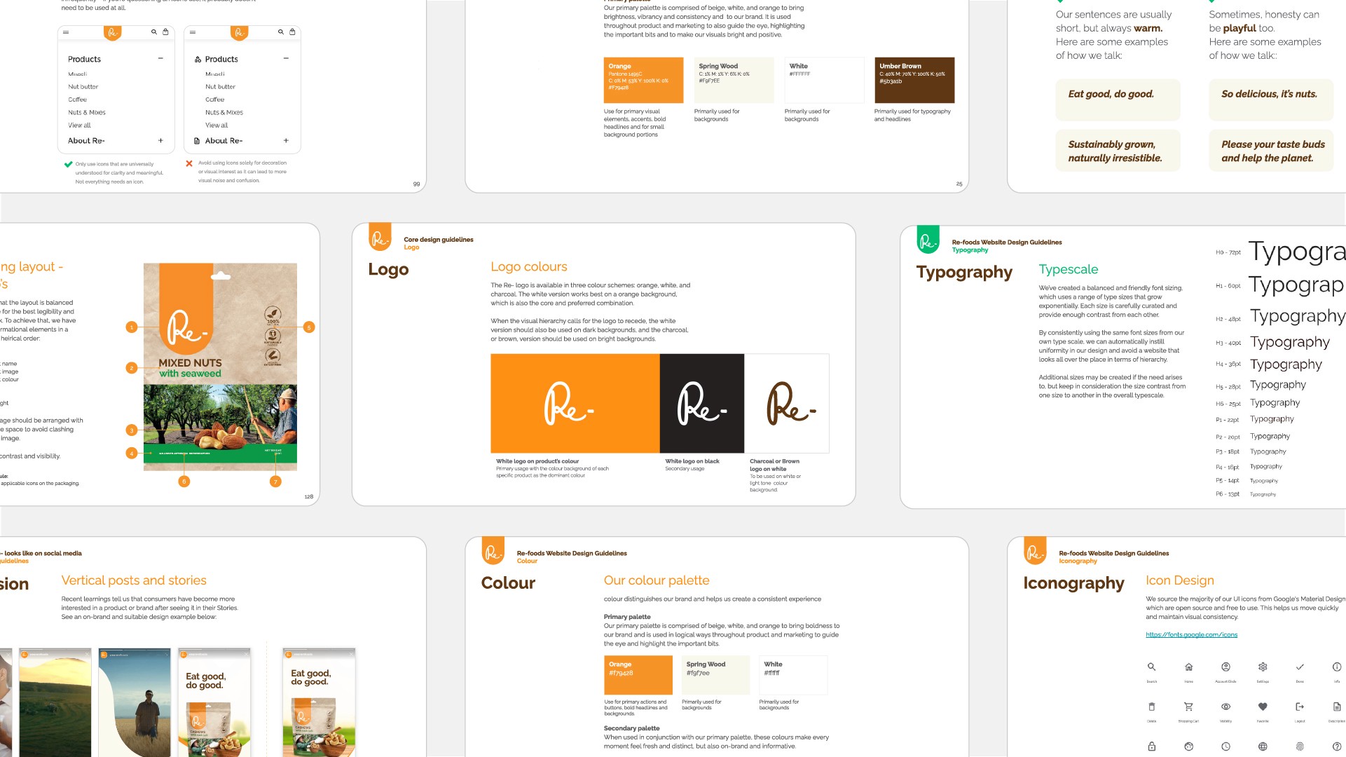 We worked from the ground up to develop a brand book for Re-, everything from their brand positioning, voice, logo, and visual identity.